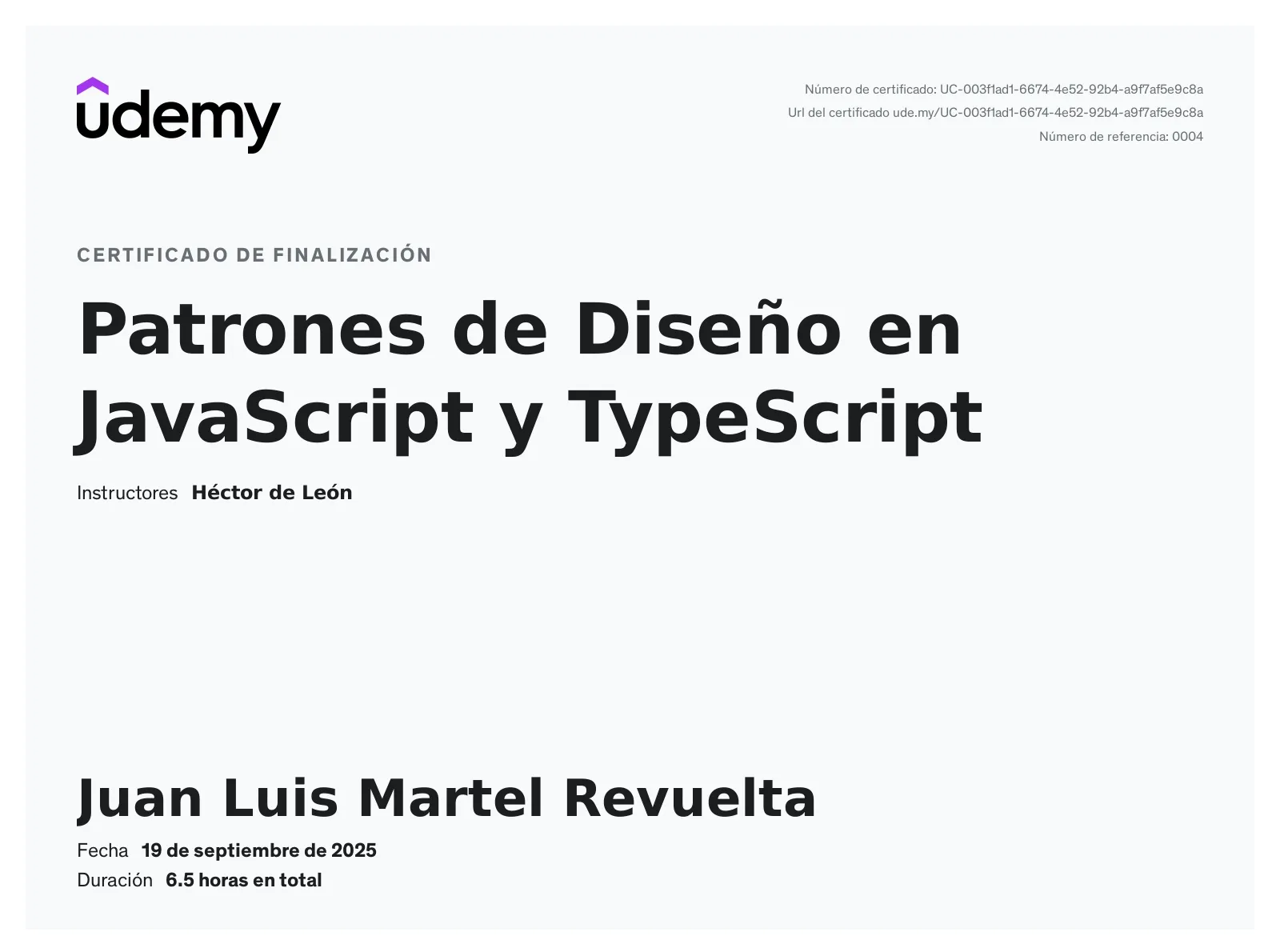 Sección titulada «Sobre el curso»Este curso especializado enseña implementación de patrones de diseño más utilizados en desarrollo frontend mediante JavaScript y TypeScript. Diseñado con enfoque diferenciador que va más allá de simple explicación teórica, profundizando en lenguajes de programación mientras se aprenden patrones estructurales y de comportamiento esenciales.